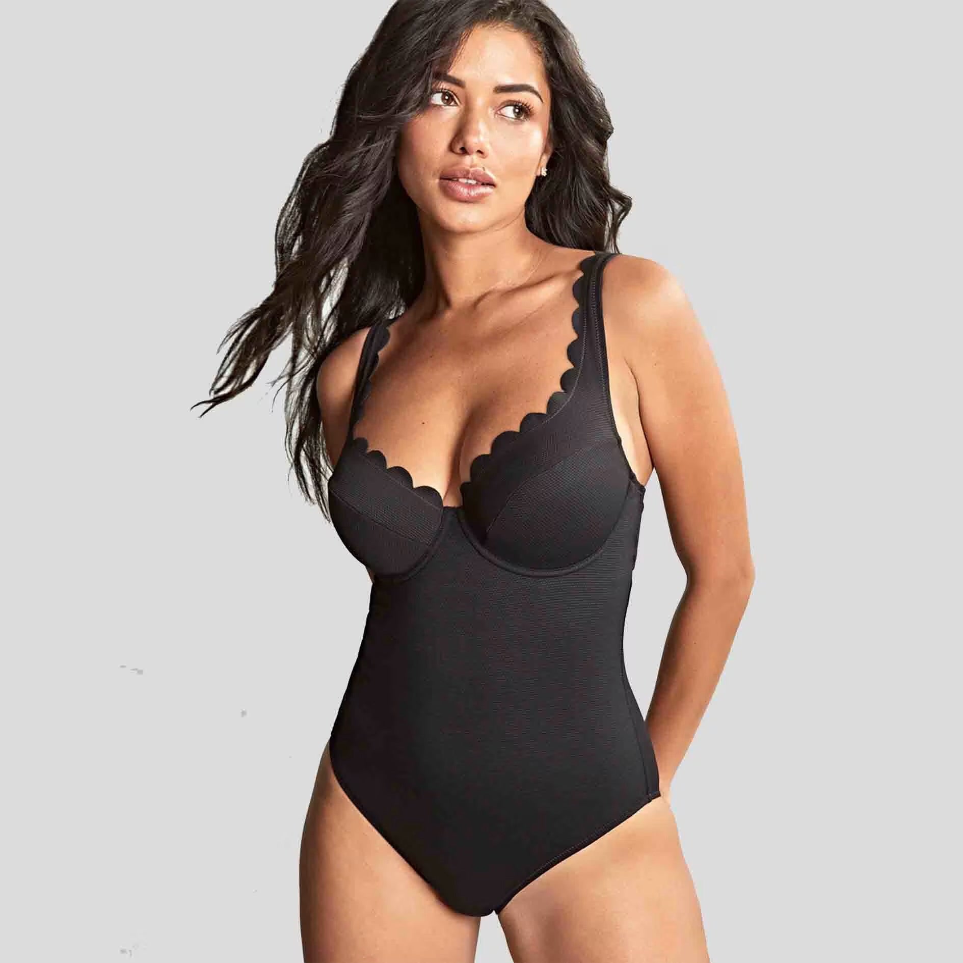 Introducing our new Spirit range to the Panache Swim collection - full of timeless silhouettes in a luxurious Spanish honeycomb textured fabric, this collection epitomises classic chic. The Rita Plunge Swimsuit features a plunging neckline that adds a touch of glamour, while the scalloped edges bring a playful charm to the design. Whether you're lounging by the pool or strolling along the beach, you'll feel effortlessly chic and comfortable in this classic black swimsuit.