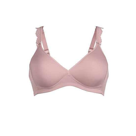 The triangle-shaped soft bra with airy spacer cups from the SELMA series combines a graceful lingerie look with a casual, feminine relaxed feel. With a deep neckline and straps that are decorated by a delicate lace trim.