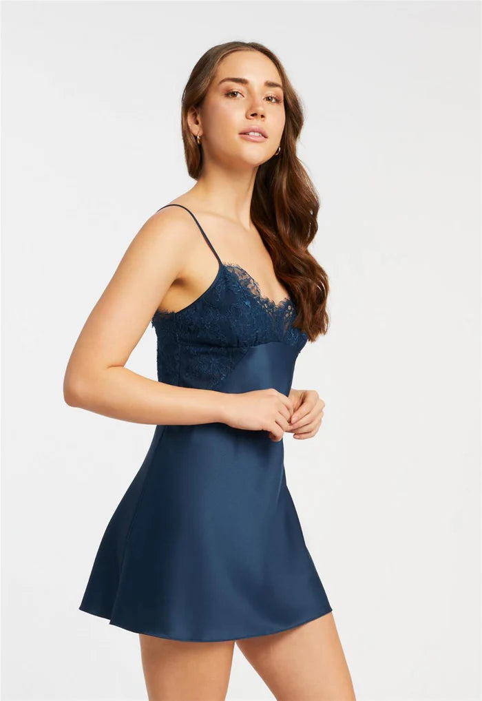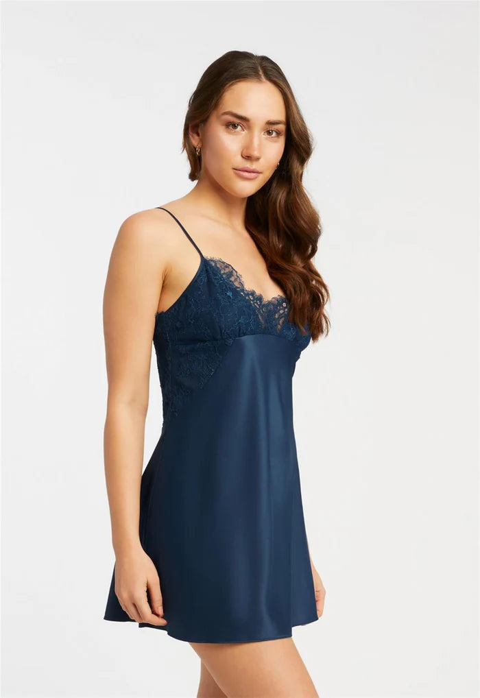 Excquisitely fitted, The Serena Chemise is a chic and seductive piece. With chantilly lace scalloping at the neckline, and discreet side windows, the Serena chemise entices effortlessly. • Scalloped V-neckline • Lace Back and Sides • Adjustable Straps • Poly Chantilly Lace and Charmeuse • Ethically Made • Hand wash cold inside out / Lay flat to dry