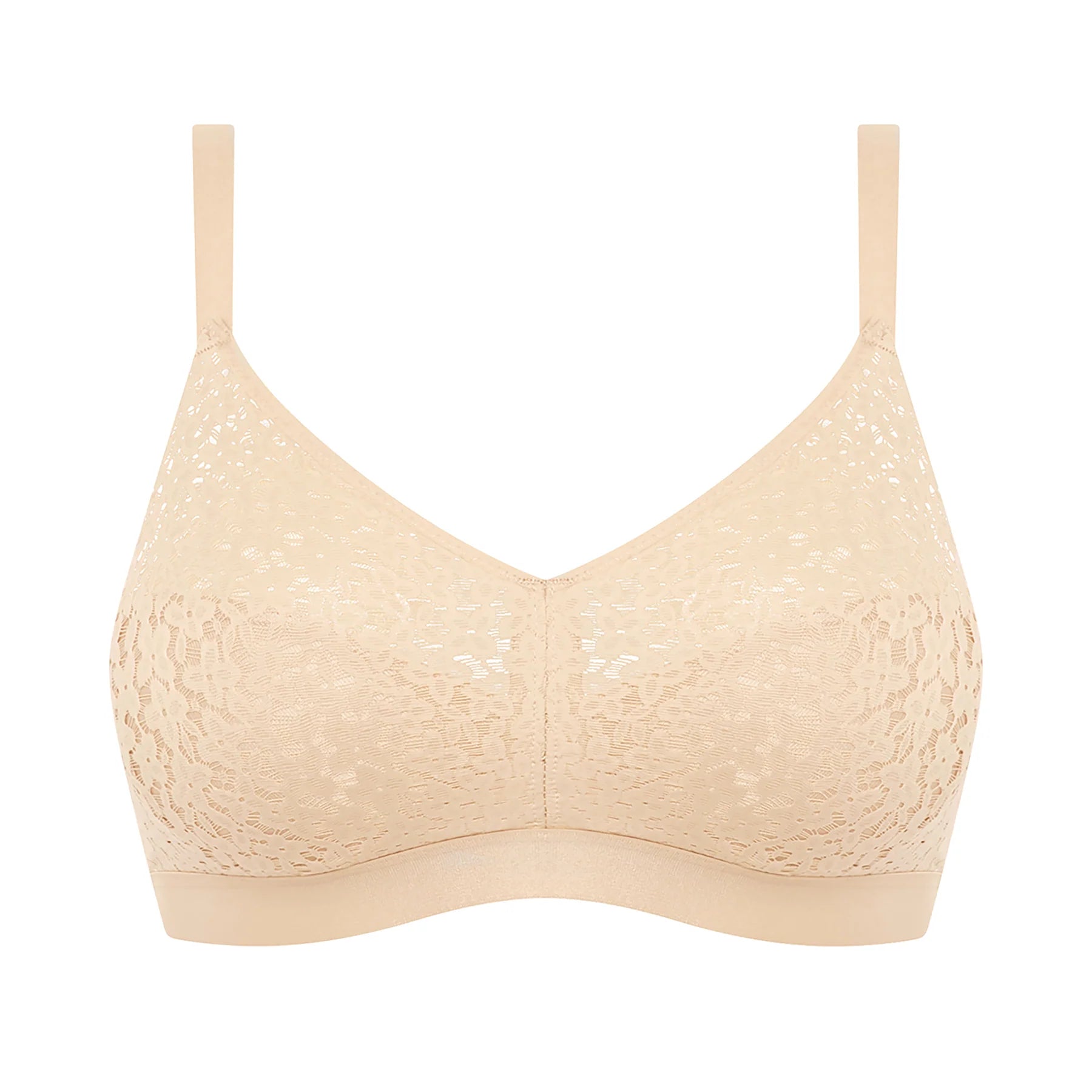 Combining support with unparalleled comfort, the Norah Wireless will be your new go-to, wire free bra. The unique, internal seamed construction gives you the lift and shape of a cut and sewn, but the ultra flat overlay smooths everything out for an invisible look. Ultra soft lace and knit round out this comfort forward style.