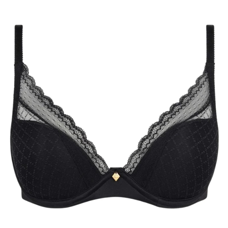 The Norah Chic Plunge T-Shirt Bra is a modern take on everyday comfort, where a chic graphic print lace meets soft and recycled materials in this eco-friendly fit.
